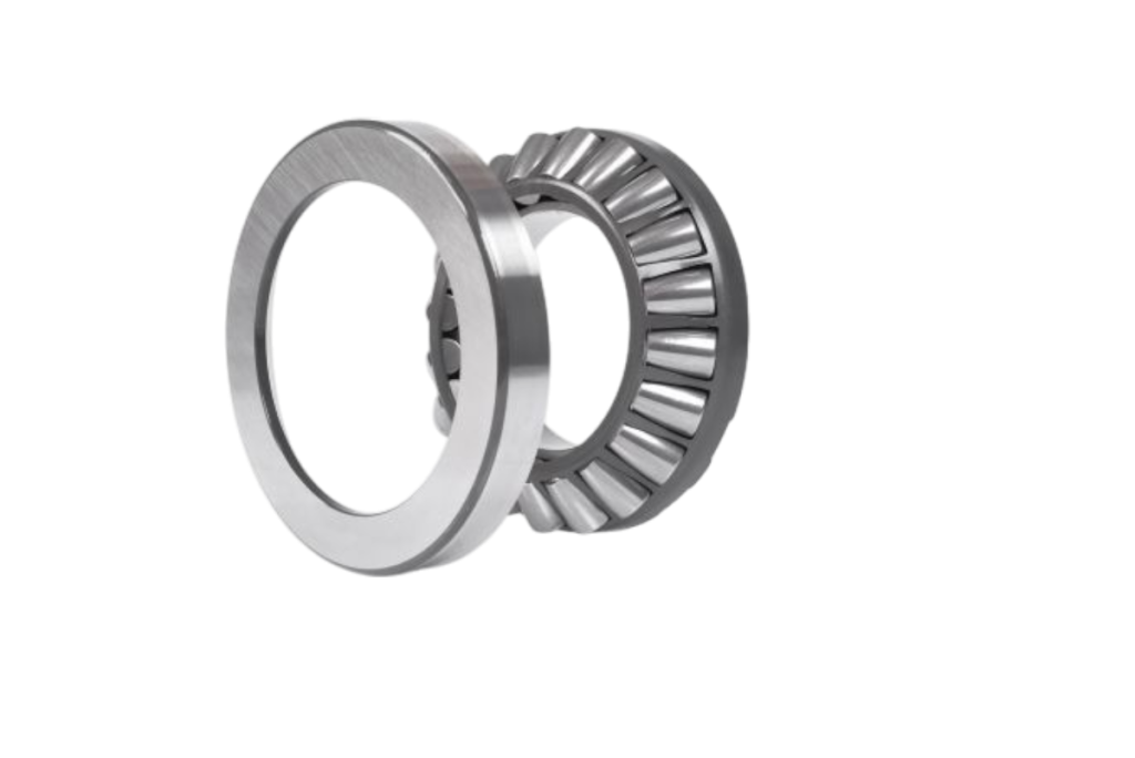 Spherical roller thrust bearings have specially designed raceways and asymmetrical rollers. The bearings can accommodate axial loads acting in one direction and simultaneously acting radial loads. The load is transmitted between the raceways via the rollers at an angle to the bearing axis, while the flange guides the rollers